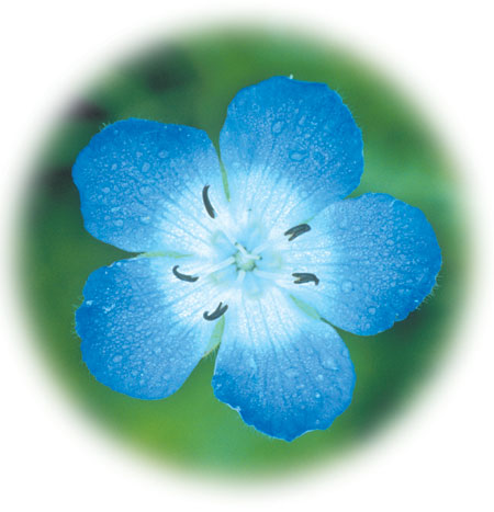 Native to the state of California and southern Oregon, the Baby Blue Eyes (Nemophila menziesii) belongs to the Hydrophyllaceae, or "Waterleaf" family, whose prime characteristic is its great affinity for water. In fact, the humidity of the soil is an important factor to the growth of this specimen. This plant's affinity to the water element is passed to the individual through the flower essence. The Baby Blue Eyes seems to mine the water deeply hidden in the individual's soul, helping the soul to encounter and heal its innate sensitivity.