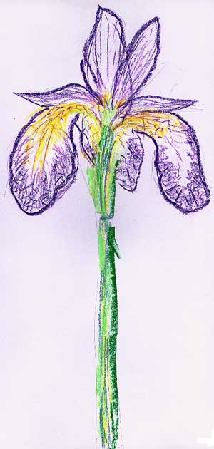 The Japanese Iris grows where it gets a lot of sunshine and in well drained soils. In Japan, they grow easily and can be found almost everywhere. The reason I chose the Japanese Iris for my study was that I hoped to have a profound learning experience. Secondly, I love purple; I always wear purple clothes and most everything around me ends up to be purple! I really feel a strong connection with the colour purple. The Irises were in bloom in the neighbourhood park when I made my decision to study the Iris. Everyday I would sit in the park and observe the beautiful purple blooms. To most Japanese people, both "Irises" are considered to be the same type of plant, although during my examination of this issue, it turned out that actually, they are two completely different plants. They have been confused for a long time. I found similar statements in a lot of the literature. All of the information I found made me even more eager to meet the ancestral Japanese Iris.