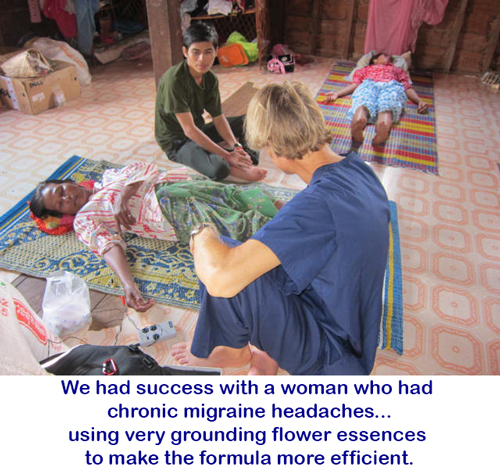 We had success with a woman who had chronic migraine headaches, which is a very common condition here, especially because of dehydration. After a lot of questioning, we found out that she was very addicted to coffee. She had several acupuncture treatments and I gave her flower essences: