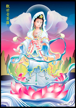Kuan Yin (also spelled as Quan Yin, Kwan Yin, Guan Yin, Gwan Yin) is the Bodhisattva of mercy and compassion. It is said that her compassion towards sentient beings exceeds that of all the other Bodhisattvas combined. She is considered to be a source of unconditional love and a savior of sentient beings, not only humans, but animals and plants.