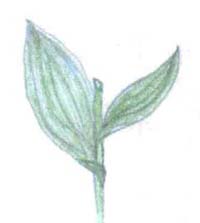 I was instantly attracted to the Corn Lily. It was telling me, "Please work on me. Don't forget me. I'm the right flower for you." I was excited to see the flower, and to know that it would help women in menopause. But there was more: The plant itself looked so full that I felt instantly embraced by her warmth. Another awesome feature that took my attention was that most of the leaves were full of holes. "This plant," I thought, "not only brings warmth, but also feeds others with herself." Overview: "Tall as a Person" The Corn Lily is a large plant. It can grow as high as six feet, as tall as a person. It has two distinct parts: the round pear- shaped bottom, formed by a round base of fresh green leaves, and the head of feathery flowers. Its stem is thick, fibrous, rough, ribbed, and very much vertical, connecting both parts of the plant. The flowers are very small, considering the large leaves and the size of the plant. The plant points in two directions: toward the earth with its grounded, round foliage, and toward the sky with all its flowering stems that point upward.