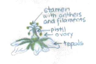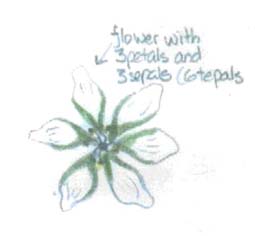 veins, and the alternating pattern of the leaves, stem, and flowers.