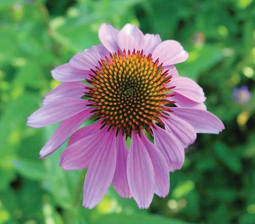 Echinacea is an erect plant, with a fibrous, tough stem. The orange bracts look something like the spines of a hedgehog. In fact, the name Echinacea comes from the Greek echinos, which means “hedgehog.” However, you are in for a surprise when you press against these bracts, for while they are stiff, they are not rigid. They bend when pressed, only to spring back quickly to their original shape once the pressure is removed. They are a living demonstration of resiliency in action, the way the immune system restores equilibrium when subject to stress.