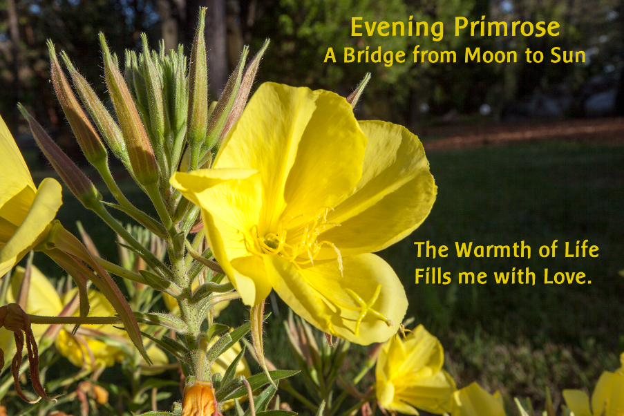The hormone balancing properties of Evening Primrose are a bridge to understanding its deeper soul qualities. The feminine reproductive system is intimately related to the forces of the Moon. The monthly menstrual cycle is truly how the Moon ebbs and flows within the woman’s body. As a night blooming flower, Evening Primrose is deeply attenuated to the Moon’s forces and opens in response to them.