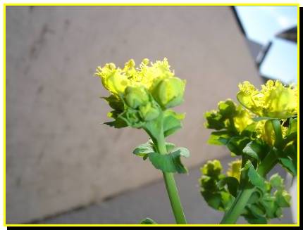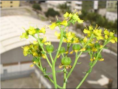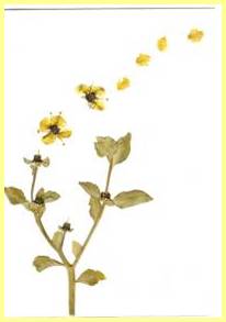 As flores amarelo-esverdeadas em forma de estrela, com borda franjada e estame protuberante, crescem em grupos que “olham para o céu". A flor central tem cinco pétalas, ao passo que todas as outras têm quatro. As pétalas arredondadas estão inicialmente curvadas em torno do centro e abrem-se lentamente, formando uma capa protetora para o ovário verde, composto de quatro/cinco lóbulos, que gradualmente incha até que as pétalas não sejam mais necessárias e caiam. O ovário, com 4-5 câmaras, continua a crescer até atingir entre 0,5 – 1 cm, tornando-se marrom à medida que amadurece, até finalmente abrir-se e revelar 4-5 minúsculas sementes pretas em seu interior. Observei este processo entre agosto e dezembro de 2007, tendo documentado a evolução da planta com fotografias, algumas das quais ilustram o presente trabalho.