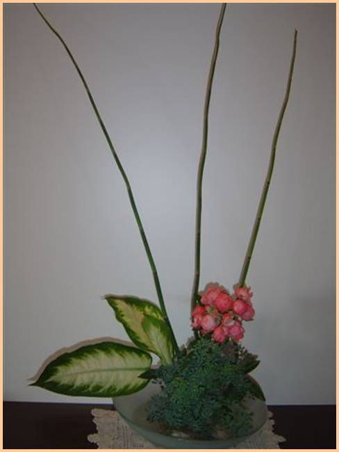 Outro exemplo de expressão artística com arruda é este arranjo floral que fiz em 2005, muito antes de saber que iria fazer este estudo. Como gosto de fotografar os meus arranjos, posso agora mostrá-lo aqui.
