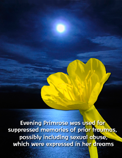 She tells the girl not to worry, that she will handle everything. She goes down on her knees, though her knees ache because of some edged stones underneath. She wraps around her friend’s daughter and brings her into her arms. It is then when a huge man appears and tells her: “You cannot do that, you are too weak. You are loser.” As he is saying those words his face is melting away, deforming. She knows that she is not afraid of him, she even responds to his words saying that he was not right, that she is capable and that is when she wakes up all of a sudden. While talking about her dream TL said that she received two insights as she was writing about this dream. The first one was that the girl from the dream was not her friend’s daughter but herself. The second one was that the man whose face was melting away was not a stranger but her father. This was the dream that helped her remember how he had kidnapped her in her real life when she was a girl. She also remembered the whole range of situations related to him which more or less reflected the messages she received through the dream. This dream very well depicted the effect of the flower essence Evening Primrose. This flower essence was repeated because even though she responded positively and decisively to negative messages from her father in the dream, in reality a situation occurred where she had an encounter with a man whom she liked but she became terribly nervous. She had the sensation of internal trembling as if she had stage-fright. In addition to it, her power of speech was completely blocked and she was not capable of saying anything except for “yes” and “no” to his questions. This is why she felt very frustrated after the encounter and she was very angry at herself.