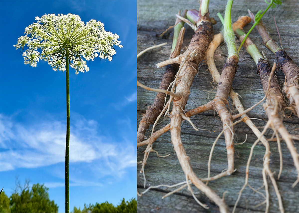 Frequently two elements are predominant in a plant, expressing a polarity, while the other two are less apparent. For example, the Queen Anne's Lace (wild carrot) shows a strong earth gesture in its tap root, and an airy quality in its finely divided leaves and flowers. As a flower essence it works with the integration of the second and sixth chakras, harmonizing sexual and psychic energies.